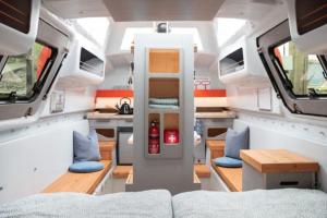 Das Boot verfügt über ein Apartment mit einem Schlafzimmer, eine voll ausgestattete Kochnische mit Herd und Küchenutensilien sowie ein Badezimmer mit Dusche. Handtücher und Bettwäsche sind vorhanden. Die Einheit liegt im Erdgeschoss und besitzt ein Fenster mit Blick auf die Umgebung. Zur Ausstattung gehören Zentralheizung, Ventilator, allergikerfreundliche Kissen ohne Federn, eine Steckdose am Bett sowie Tee- und Kaffeezubereitungsmöglichkeiten. Die Toilette ist außerhalb des Apartments gemeinschaftlich nutzbar. Ein separater Eingang gewährleistet zusätzliche Privatsphäre.