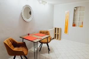 W skład mieszkania wchodzą dwie sypialnie, łazienka wyposażona w kabinę prysznicową lub wannę oraz kuchnia z piekarnikiem, tosterem i ekspresem do kawy. W części wypoczynkowej znajduje się telewizor oraz sofa rozkładana na łóżko. Ogrzewanie dostępne jest na całym terenie wnętrza. Z tarasu roztacza się widok na cichą ulicę.