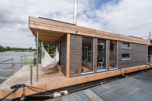 Informace o Hausboot AHOI hochwertiges Hausboote mit großer Terrasse und Kamin