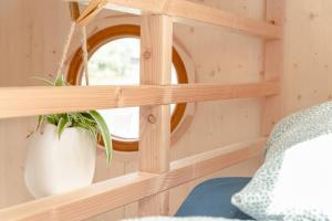 В этом плавучем доме предусмотрена спальня с раскладным диваном, гостиная с камином и кухонный уголок, оборудованный холодильником и плитой. В распоряжении гостей полотенца, постельное бельё, подушки без перьев, зона отдыха и выход на открытую террасу.