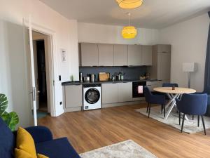 Das Apartment besteht aus einem Schlafzimmer, einem Wohnzimmer mit Flachbild-TV sowie einer voll ausgestatteten Küche mit Geschirrspüler, Backofen und Kochfeld. Das Badezimmer ist mit einer begehbaren Dusche ausgestattet. Zur Ausstattung gehören Handtücher, Bettwäsche, Heizung, eine elektrische Decke im Schlafbereich sowie ein Wasserkocher. Die Nichtraucher-Unterkunft ist allergikerfreundlich gestaltet und bietet Familienzimmeroptionen sowie Klappbetten.