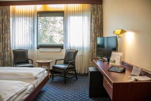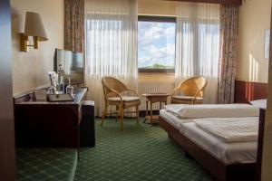 Tříhvězdičkový hotel disponuje útulnými světlými pokoji s vlastní koupelnou vybavenou mýdlem a fénem. Pokoje jsou kobercové, mají výhled na město, topení, rozkládací pohovku, možnost dětské postýlky, zásobu ručníků i pracovní stůl se zásuvkami pro nabíjení. K dispozici jsou také rodinné pokoje. Zábavu zajišťují televizory s plochou obrazovkou v pokojích i společných prostorách a hosté mohou využít deskové hry či puzzle.