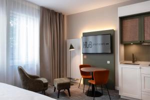 HUB Apartments St Georg nabízí ubytování v centru Hamburku s výhledem na město a bezplatným Wi-Fi, pouhých pár minut chůze od hlavního vlakového nádraží Hamburg, Dialog im Dunkeln a nákupní ulice Mönckebergstrasse.