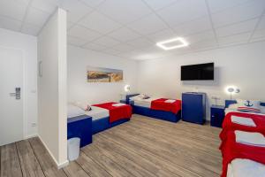 Das Hostel stellt Familienzimmer mit Heizung zur Verfügung, Bettwäsche ist inklusive. Jedes Zimmer ist mit einem Kleiderschrank oder Schrank zur Aufbewahrung, einem Flachbildfernseher mit Kabelkanälen, einer elektronischen Schlüsselkarte am Türschloss, Spinden sowie einem Kühlschrank ausgestattet. Die Badezimmer verfügen über begehbare Duschen. Kinderbetten können auf Wunsch bereitgestellt werden.