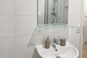 Das geräumige Apartment verfügt über ein Schlafzimmer, einen Flachbildfernseher sowie eine voll ausgestattete Küche mit Mikrowelle, Toaster, Kühlschrank, Waschmaschine und Küchenutensilien. Das Badezimmer ist mit Dusche und Badewanne ausgestattet, Shampoo, Conditioner, Seife sowie Handtücher und Bettwäsche sind vorhanden. Der Innenraum ist mit Parkett- oder Holzfußboden ausgelegt.