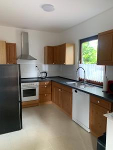 The spacious apartment features three bedrooms, a living room with a flat-screen TV, an equipped kitchen including a dishwasher and oven, and one bathroom with a walk-in shower. Towels, bed linen, and non-feather pillows are provided. Guests can enjoy furnished outdoor areas such as the terrace connected to the apartment.
