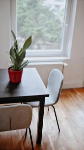 Este apartamento para no fumadores dispone de cocina totalmente equipada con horno, nevera y placa de cocina, además de un baño con ducha. La zona de estar está separada de la cocina. Los huéspedes pueden utilizar toallas, ropa de cama, calefacción y lavadora. También se incluye un tendedero para ropa y una mesa.