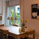 The accommodation features one double bed with parquet flooring, a wardrobe, heating, and a work desk along with bed linen and towels provided for comfort. Guests can enjoy tea and coffee making facilities alongside a dining area in the room itself.