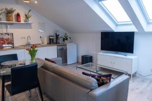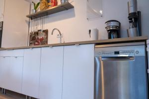 L’appartement se compose d’une chambre, d’un séjour équipé d’une télévision à écran plat, d’une cuisine aménagée avec lave-vaisselle et four, ainsi que d’une salle de bains dotée d'une douche à l’italienne. La terrasse offre une vue sur le jardin. Les invités profitent également de l’insonorisation, d’un accès privé indépendant, de serviettes et linge de lit inclus, des oreillers en duvet, d’une machine à café et sèche-cheveux. Un espace bureau est prévu dans les parties communes moquettées chauffées pour les saisons froides.