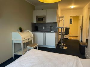 L’appartement se compose d’une chambre séparée équipée de coussins en plumes et sans plumes, d’une salle de bains avec articles de toilette offerts, ainsi que d’une cuisine entièrement équipée comprenant un coin repas et une kitchenette. Un espace repas extérieur est également disponible. Pour le divertissement, un téléviseur à écran plat avec chaînes câblées est fourni. Le chauffage, les équipements pour repasser, un sèche-cheveux, un micro-ondes, une bouilloire électrique et une armoire complètent les prestations.